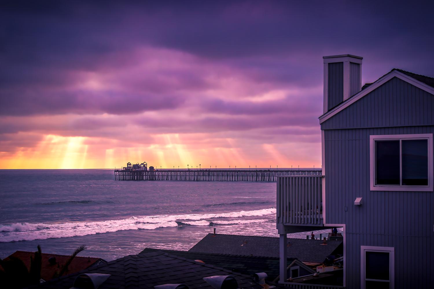 This image was taken just a few days after the Oceanside Pier fire, which completely destroyed the building at the end. As I was walking with my camera, I caught these beautiful rays of light breaking through the clouds. Oceanside, California Taken May 2024